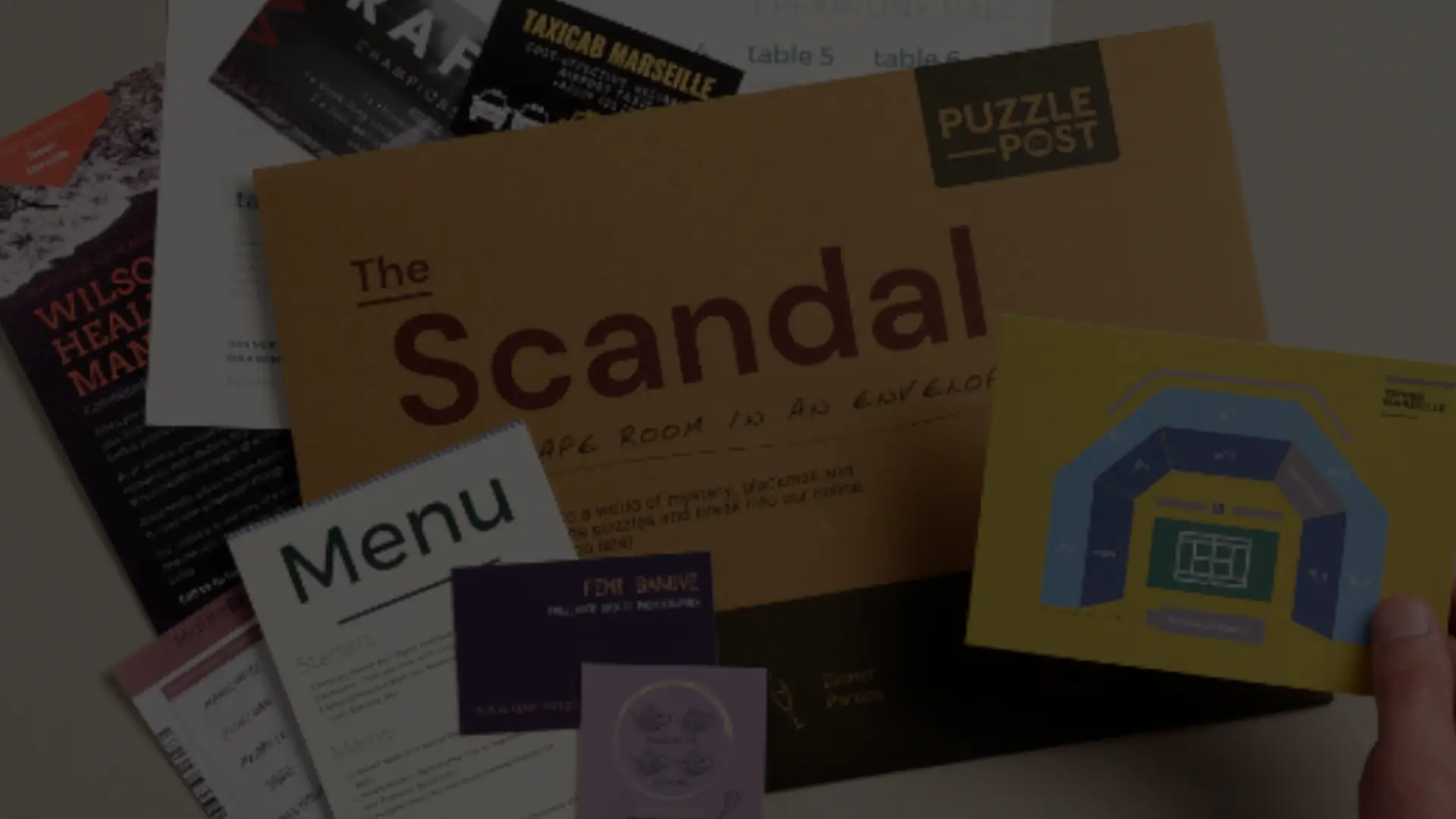 Looking for more puzzle-solving fun after your game? We stock a rotating selection of Play at Home escape room puzzles and mystery games. These compact, story-driven games recreate the escape-room experience in the comfort of your own home.